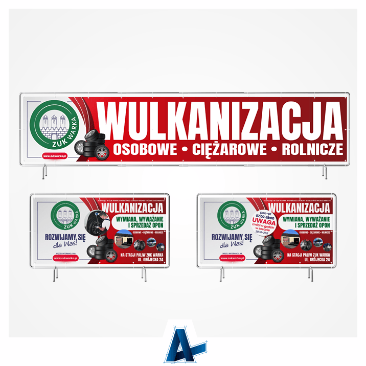 Przygotowanie kolejnej kampanii dla Zakładu Usług Komunalnych w Warce za nami 👌😊 Tym razem do promocji w myśl hasła „Rozwijamy się dla Was”, dołączyła część wulkanizacyjna, gdzie są obsługiwane nie tylko samochody z ZUKu, ale także mieszkańców i gości. Bo każdy może skorzystać z oferty wulkanizacyjnej 🙂 A my wykonaliśmy różnej wielkości plakaty, wlepy, ulotki i plakaty 💪