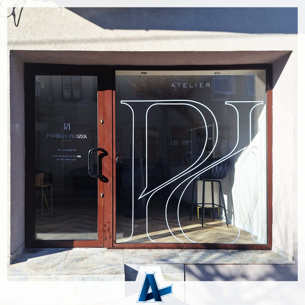Nie każda realizacja zaczyna się od naszego projektu graficznego — i właśnie to pokazuje, jak ważna jest elastyczność oraz precyzja wykonania. W przypadku Atelier Patrycja Piliszek przy ul. Lotników 8 w Warce otrzymaliśmy od klientki gotową wizualizację witryny, którą naszym zadaniem było wiernie odtworzyć w rzeczywistości.