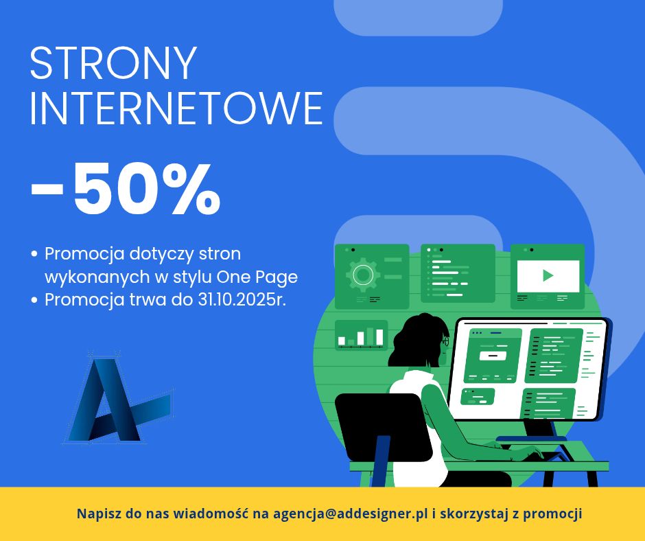 Tylko teraz w addesigner.pl przygotowaliśmy HIT CENOWY – aż -50% na strony typu ONE PAGE! 💻✨