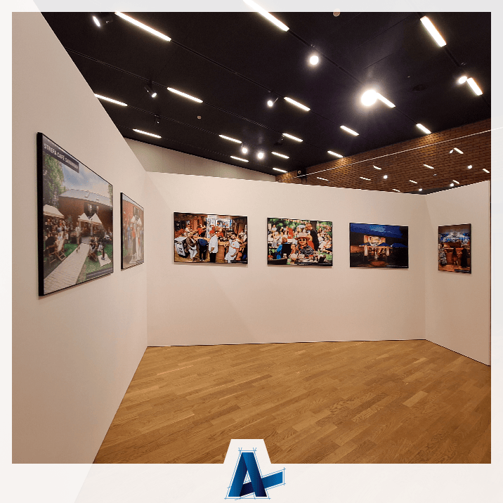 Nasza praca polegała na druku dostarczonego projektu, a następnie oklejeniu tablic pcv i oklejeniu ścianek w Centrum Edukacyjno-Muzealnym. Dzięki dobranej formie oklejenia ścianek w wariancie poziomym uzyskaliśmy efekt łączenia folii znacznie poniżej poziomy wzroku, co przekłada się na mniejszą widoczność.